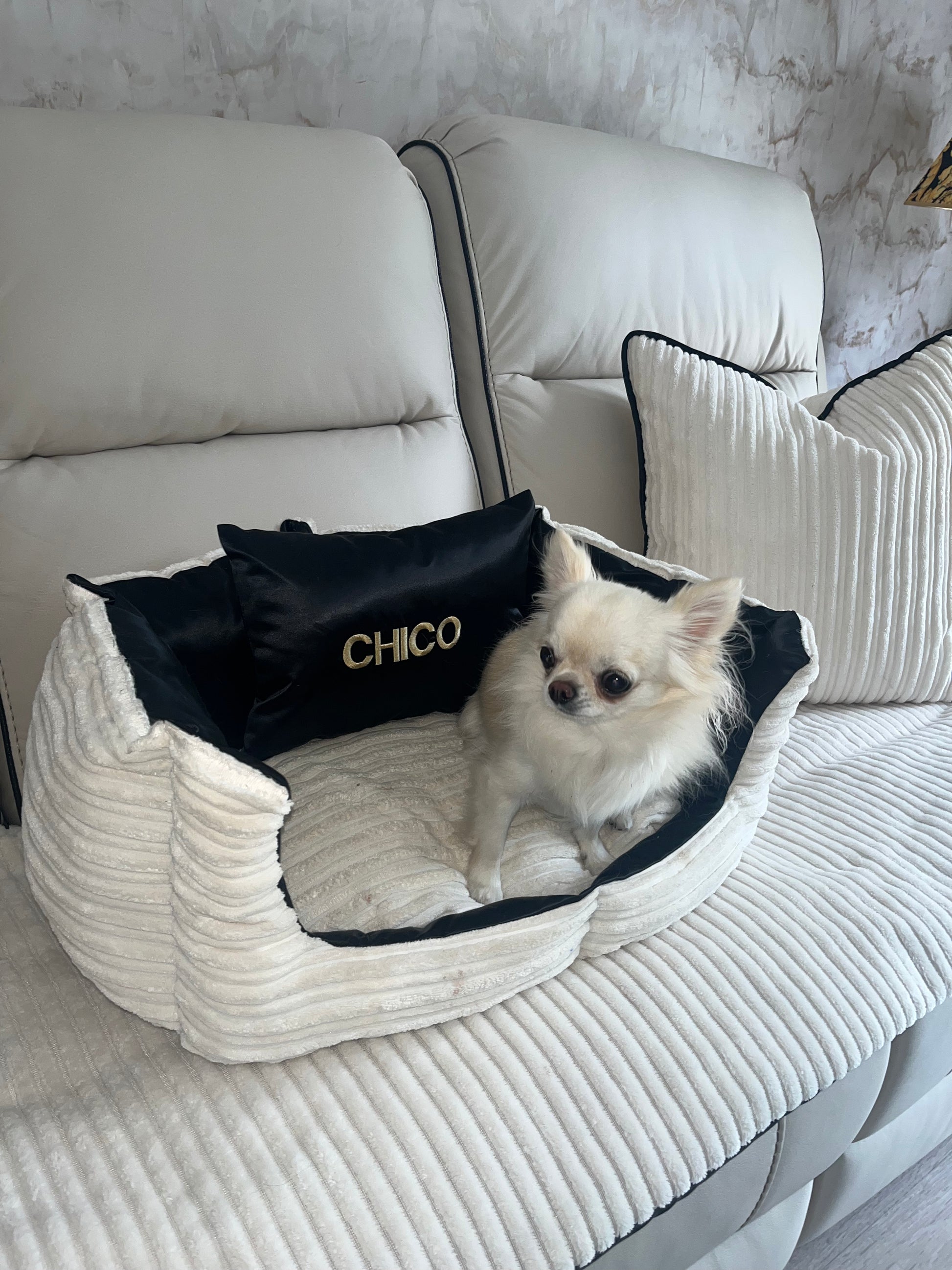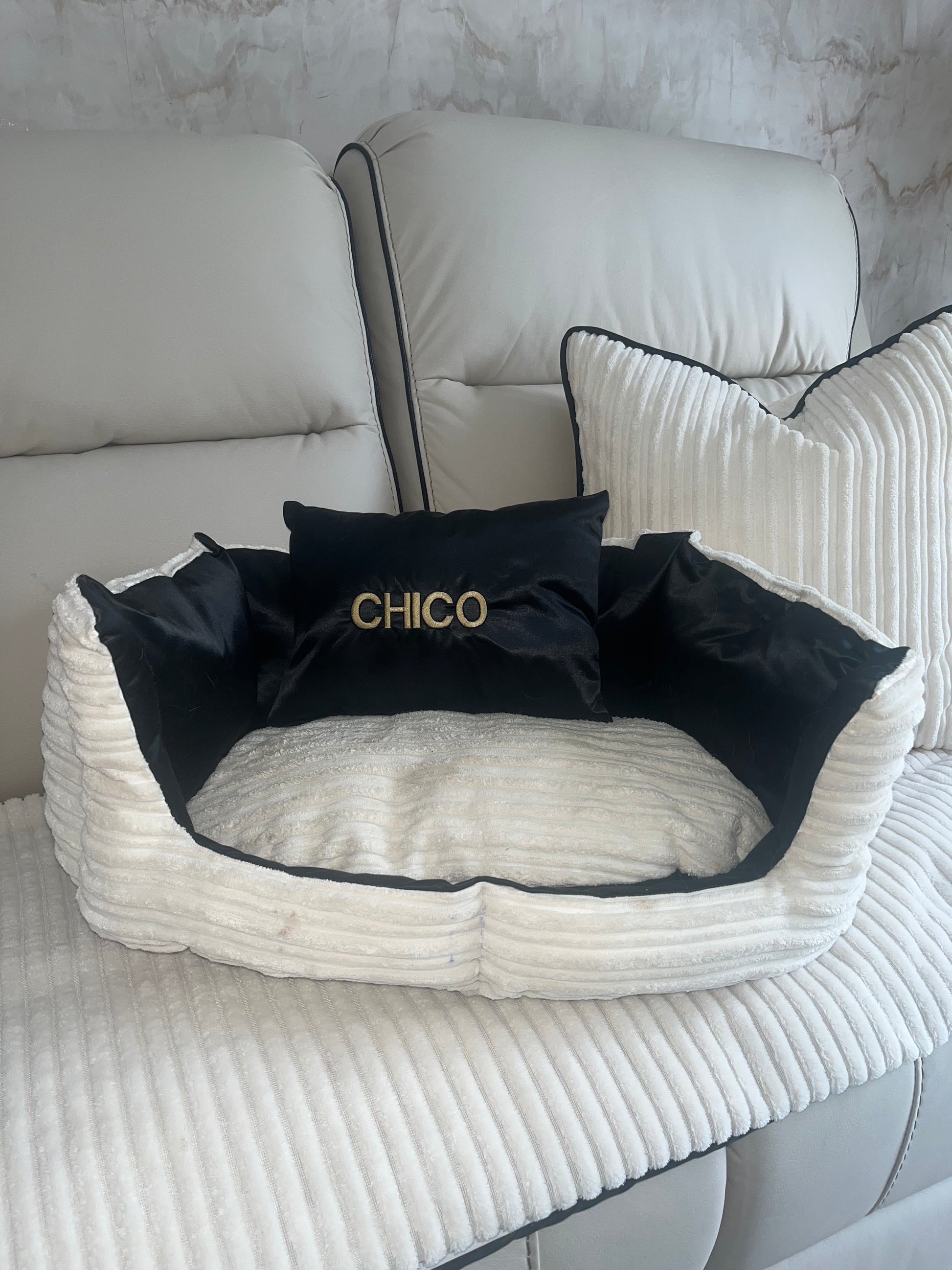 Cream and Black Dog Bed (Personalised)
