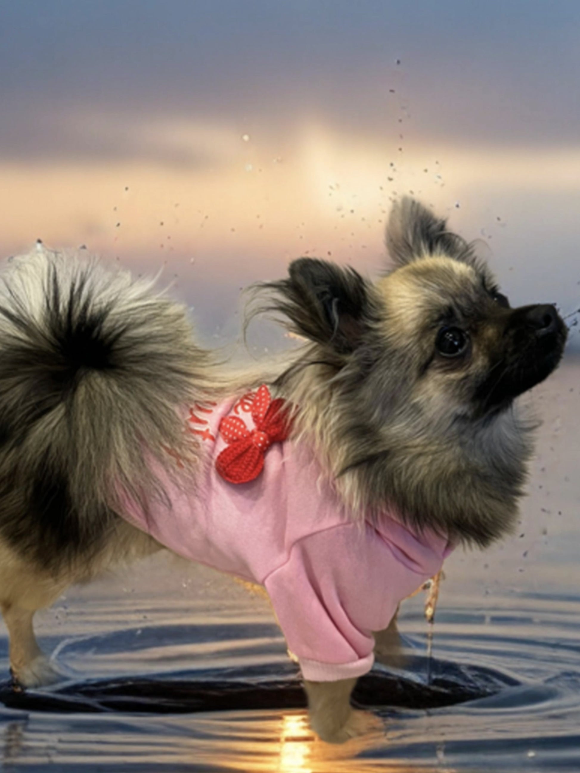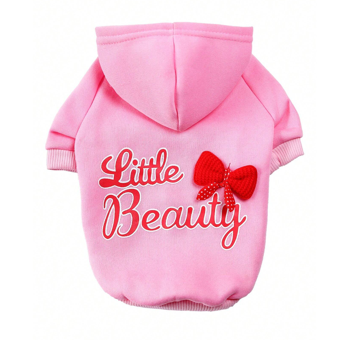 1pc Pink bow knot hooded dog sweatshirt. Comes with a lead hole, so no need to remove to get a lead on your dog.
